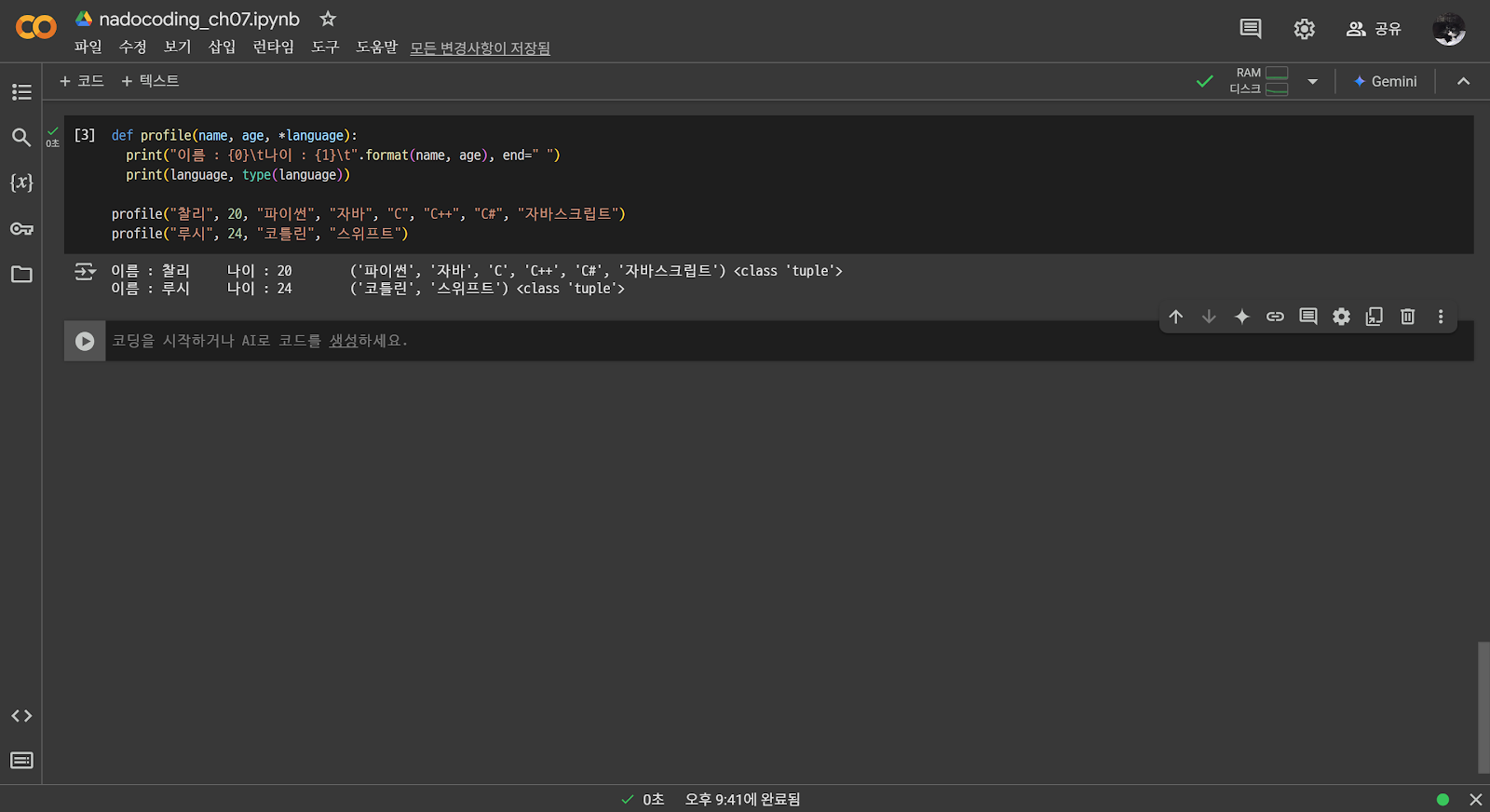 함수에서 전달값 앞에 *를 추가하면 가변 인자가 된다.