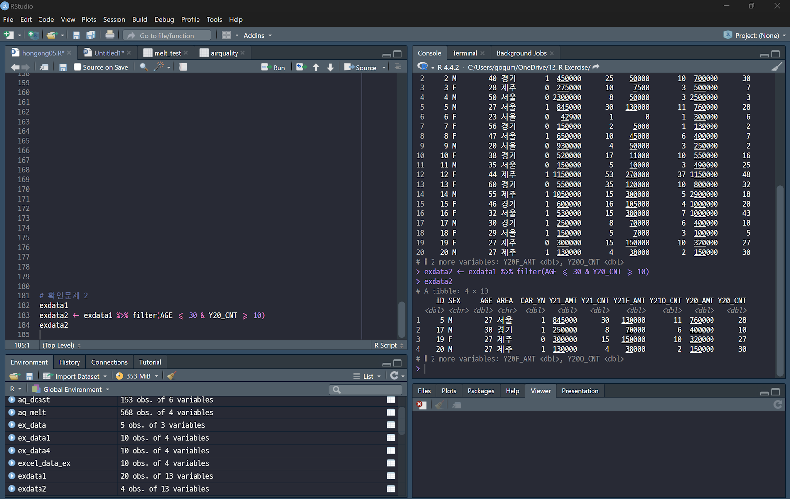 데이터 세트 %>% 조건 또는 계산 %>% 데이터 세트